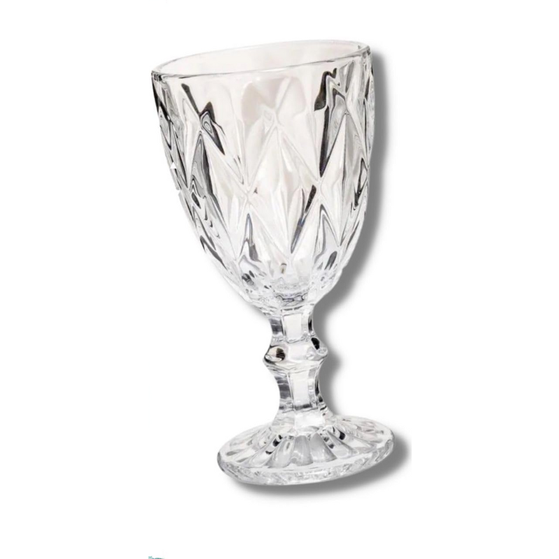Jogo 6 Taças Vidro 340ml Diamond Transparente Na hora de servir as bebidas num almoço ou jantar, é ideal que elas estejam com uma boa temperatura, mas para isso é importante usar a taça certa para cada tipo de bebida. Além disso, elas deixam a sua mesa mais bonita na hora de receber os convidados. As Taças Diamond reúnem essas duas características, desenvolvida com vidro de excelente qualidade é resistente o que garante toda durabilidade. Possuem 340ml de capacidade são ideais para água, suco e refrigerante. O conjunto possui design moderno e sofisticado com relevo ondulado em sua base e corpo com losangos que dão um toque de requinte e combinam demais com uma mesa posta. Conteúdo da Embalagem: – 6 Taças Vidro Diamond Especificações do Produto: – Capacidade: 340ml – Material: Vidro – Cor: Transparente
