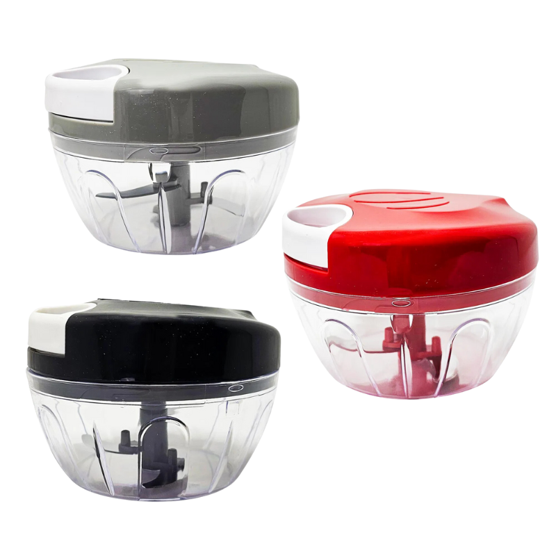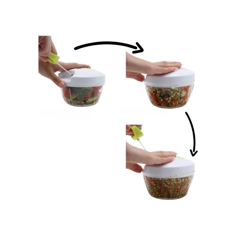 Processador super compacto, possui sistema giratório com corda e com 03 lâminas super eficientes que facilitam o preparo dos alimentos triturando fácil e rapidamente alho, cebola, tomate, pimentão dentre outros.O manuseio é muito prático, basta incluir os alimentos no dispenser, travar a tampa e puxar a corda várias vezes até os alimentos ficarem bem picados.Possui lâminas em aço inox com excelente capacidade de corte.Fácil de limpar e ocupa pouco espaço na sua cozinha
